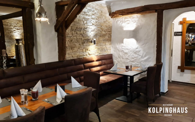 Restaurant & Saal – Wir richten Ihre Feier aus! Ob privat oder geschäftlich, Geburtstagsfeier, Betriebsfeier, Familienfest, Jubiläum, Weihnachtsfeier, kirchliche Feste wie Taufe, Erstkommunion, Firmung, Konfirmation, Trauerfeiern oder Firmenjubiläum. Ihre Veranstaltung soll Ihnen und Ihren Gästen in schöner Erinnerung bleiben. Dann sind Sie bei uns richtig! Gerne planen wir für Sie besondere Menüs und kalte oder warme Buffets für jeden Anlass und sorgen für ein unvergessliches Fest für Sie und Ihre Gäste. Wir stehen Ihnen mit unserer langjährigen Erfahrung in einem persönlichen Gespräch mit Rat und Tat zur Seite. Vereinbaren Sie mit uns einen Termin und lernen Sie das Team vom Kolpinghaus und Ihre Gastgeber kennen. Im Saal bieten wir Platz bis zu 45 Personen im gemütlichen Ambiente.